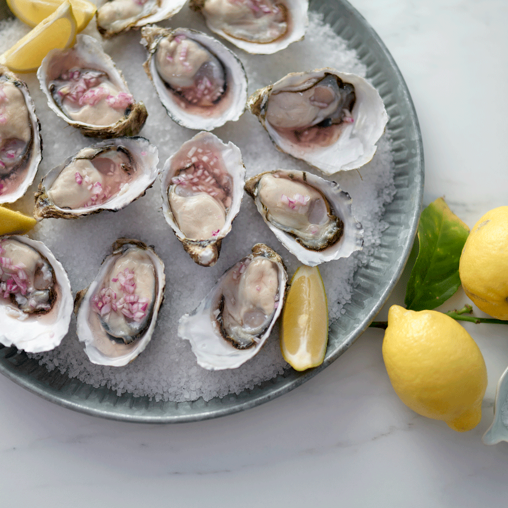 Spoon a tablespoon of the vinaigrette over each oyster.