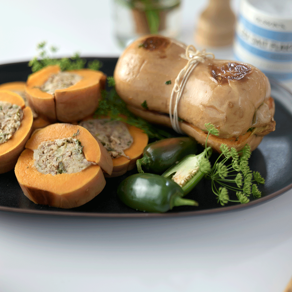 Grab your butternut pumpkin and slice in half lengthways. If you’re a bit nervous about doing this simply ask your local greengrocer.